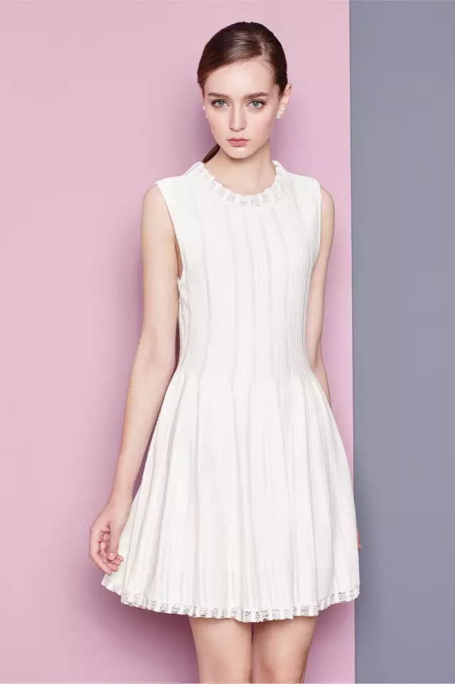 针织面料本身所具有的收缩性,时尚修身却不产生束缚感。配上镂空细节和蕾丝点缀,完美修饰出女性理想好身材。采用较重的纱线织成的裙摆更具有垂坠感,经过特殊的褶皱工艺处理,营造出灵动之感,实现女性梦寐以求的白色甜美感!无论时尚潮流如何演变更替,但经典“小白裙”的魅力永远无法被取代。想要像陈妍希一样成功进阶优雅女神,一条VGRASS “小白裙”就能帮你做到!