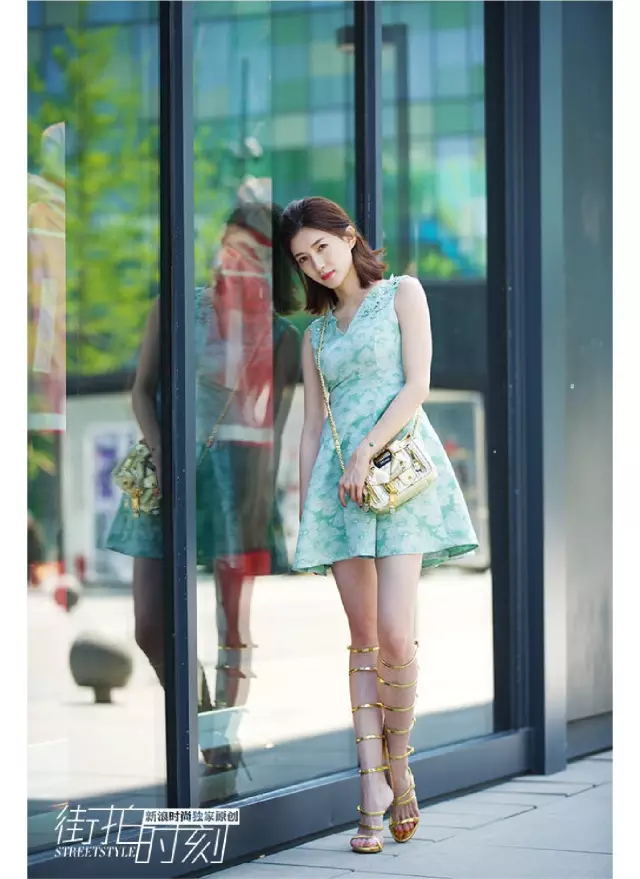 炎炎夏日里,一抹难得的清凉之意在裙摆间恣意流淌,仿佛凝滞的空气里都充满了沁人心神的阵阵青草香。高腰X廓形设计成功缔造女性黄金身材比,再搭配一双鎏金色绑带罗马鞋,江疏影瞬间化身斩男力MAX的长腿女战神,在优雅与摩登间游刃自如。