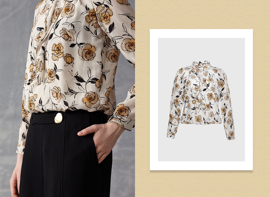 深V领型+侧镂空的组合增强结构感和轮廓感,成功地修饰上半身,实现视觉上的显瘦特效。宽大的裤摆更是呈现干练潇洒的女性新姿,想要Chic必须人手一件才行!